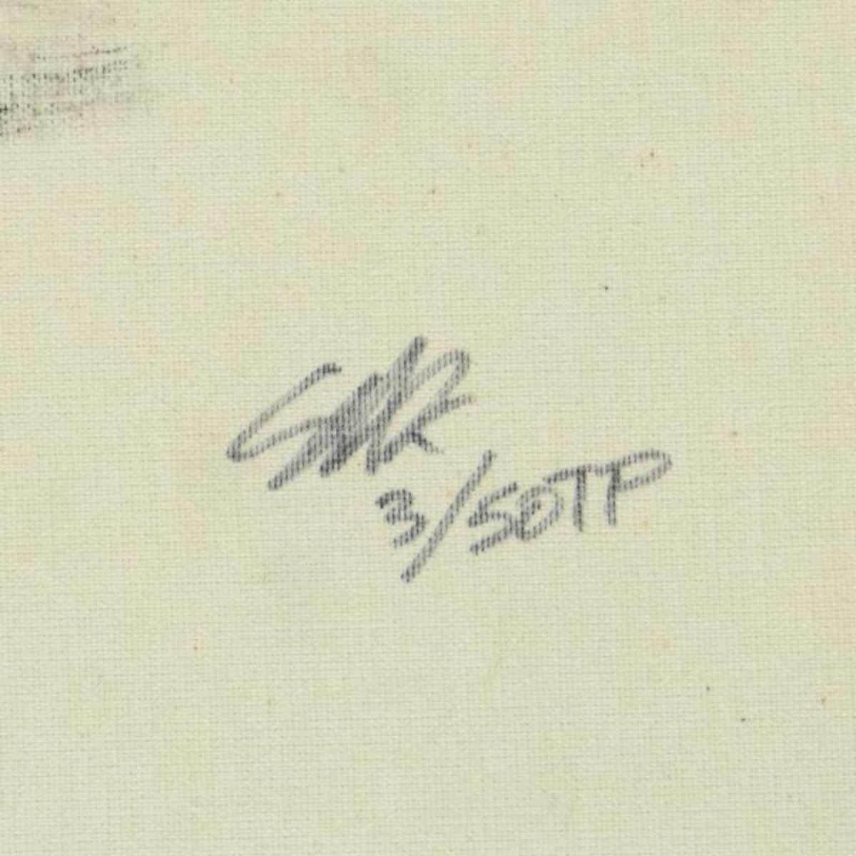 "Hollywood" is a hand embellished limited edition silkscreen on canvas by Andy Warhol protege Steve Kaufman (1960-2010). This piece is TP numbered 3/50 and hand signed inverso. Includes letter of authenticity. Measures approx. 34" x 24" (image). Reference #: 238132