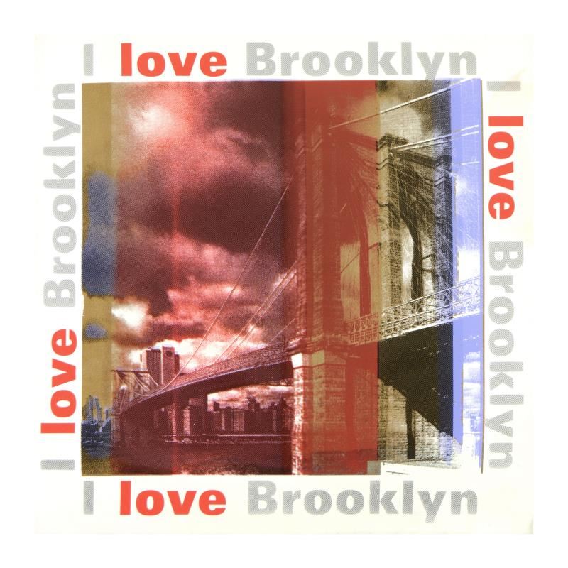 "I Love Brooklyn" is a Hand Pulled silkscreen on canvas by Andy Warhol protege Steve Kaufman (1960-2010), hand signed inverso. Includes letter of authenticity. Measures approx. 24" x 24" (image). Due to the nature of the canvas this piece will need to be