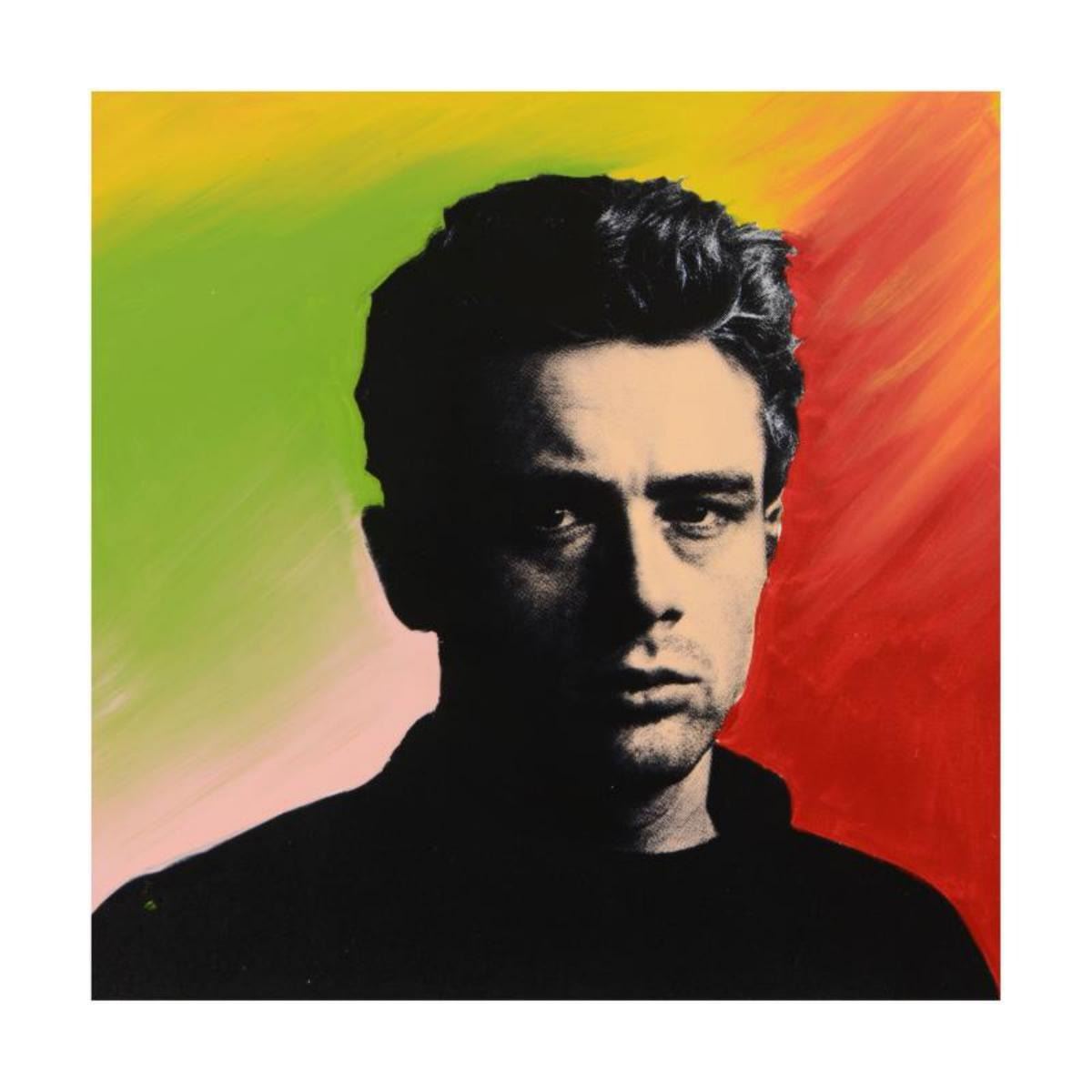 "James Dean" is a hand painted limited edition hand pulled silkscreen on canvas by Andy Warhol protege Steve Kaufman (1960-2010). This piece is numbered 43/50 and hand signed inverso. Includes Certificate of Authenticity. Measures approx. 24" x 24" (image). Reference #: 238524