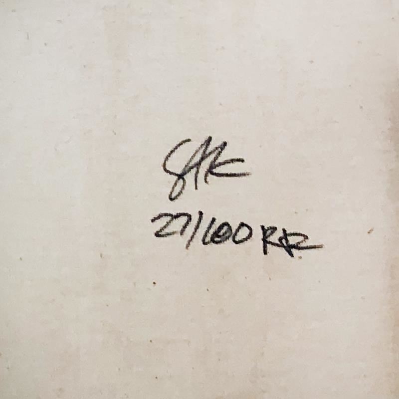"Japanese Yen" is limited edition hand pulled silkscreen unique mixed media on canvas by Andy Warhol protege Steve Kaufman (1960-2010). This piece is numbered and hand signed inverso and includes a letter of authenticity. As is common with Kaufman's works, this piece may have perceived minor flaws, but is in overall good condition. Measures approximately 20.5" x 41" before cropping.