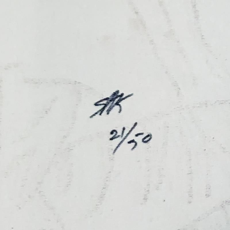 "Jesus Peace (State 2)" is limited edition hand pulled silkscreen unique mixed media on canvas by Andy Warhol protege Steve Kaufman (1960-2010). This piece is numbered and hand signed inverso and includes a letter of authenticity. As is common with Kaufma