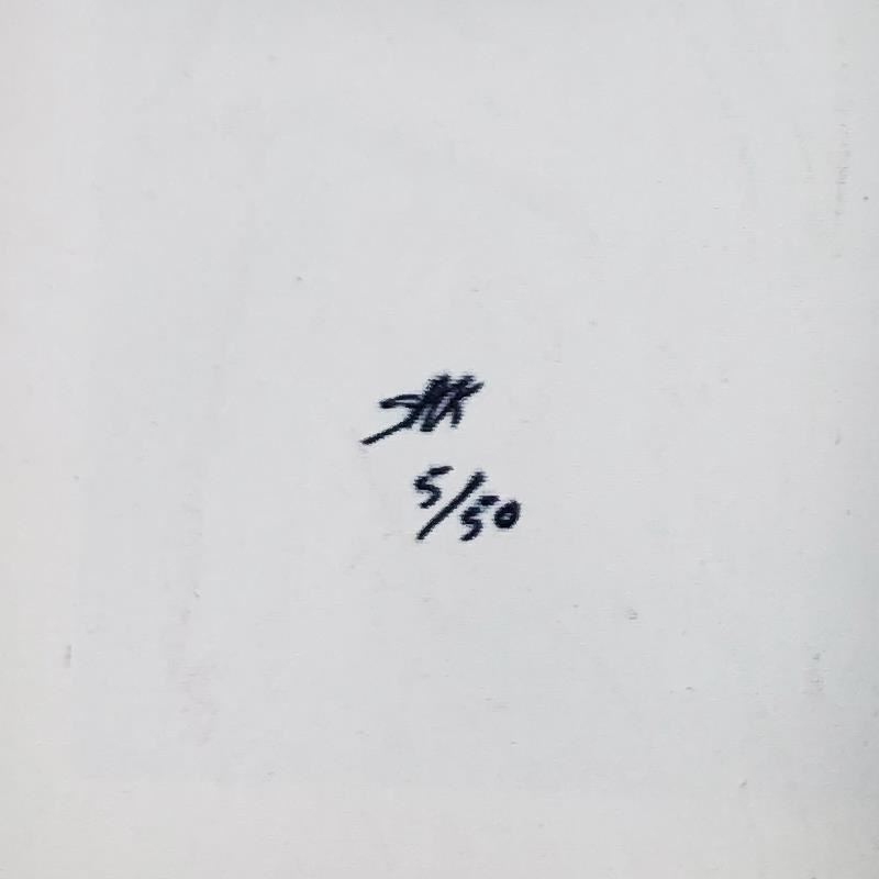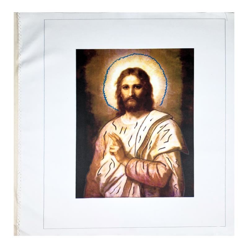 Steve Kaufman (1960-2010), "Jesus Peace (State 2)" Hand Signed and Numbered Limited Edition Hand Pulled silkscreen mixed media on Canvas with LOA. "Jesus Peace (State 2)" is limited edition hand pulled silkscreen unique mixed media on canvas by Andy Warhol protege Steve Kaufman (1960-2010). This piece is numbered and hand signed inverso and includes a letter of authenticity. As is common with Kaufman's works, this piece may have perceived minor flaws, but is in overall good condition. Measures approximately 28" x 23" before cropping.