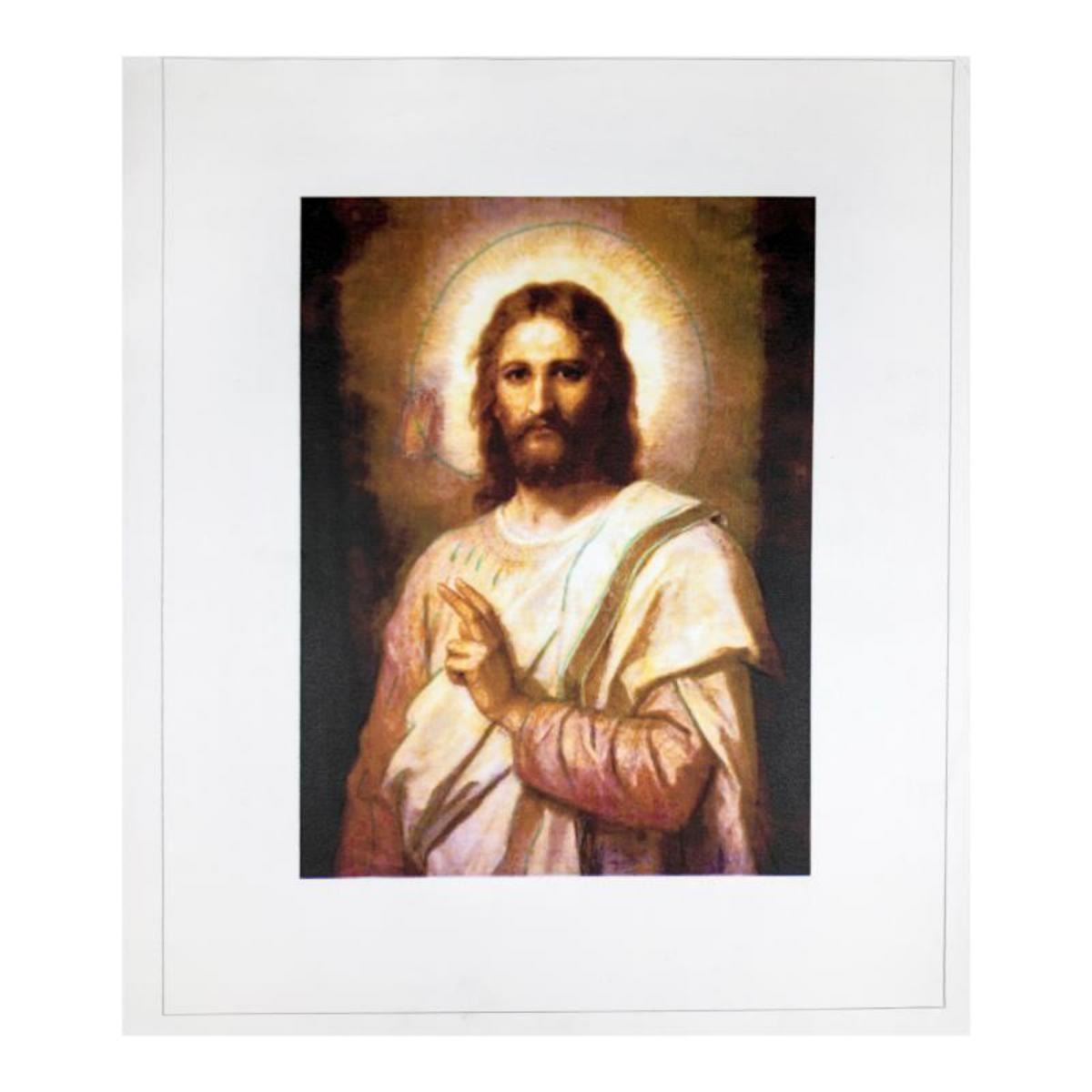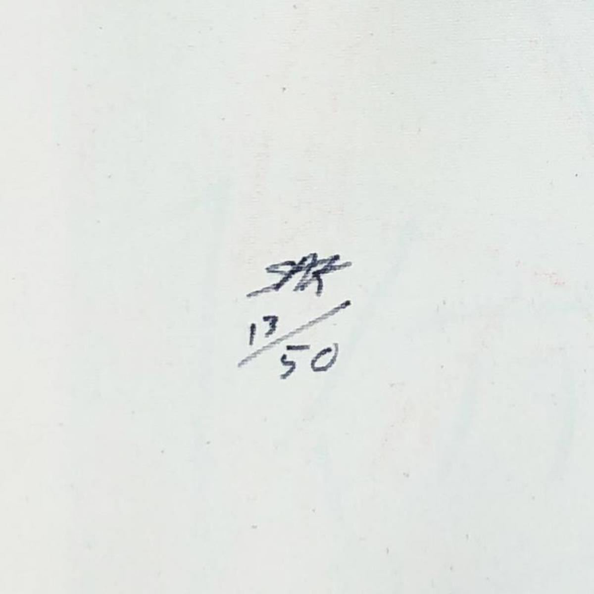 "Jesus Peace (State 2)" is limited edition hand pulled silkscreen unique mixed media on canvas by Andy Warhol protege Steve Kaufman (1960-2010). This piece is numbered and hand signed inverso and includes a letter of authenticity. As is common with Kaufman's works, this piece may have perceived minor flaws, but is in overall good condition. Measures approximately 28" x 23" before cropping. Reference #: 243456