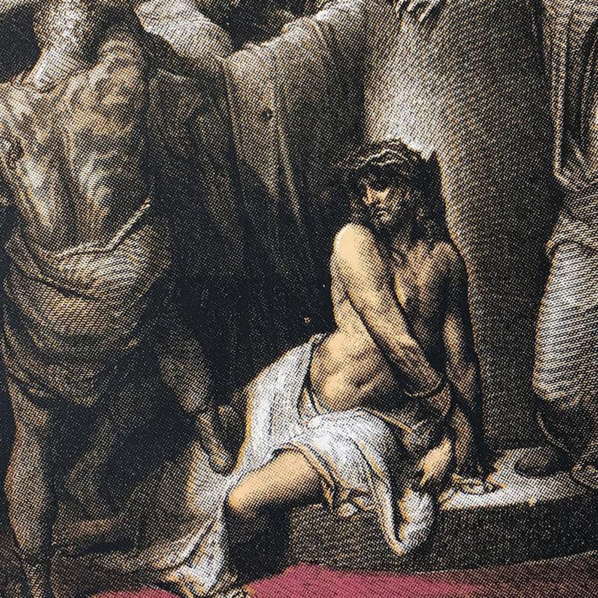"Jesus, State Two" is a one of a kind, hand painted, silkscreen on canvas by Andy Warhol protege Steve Kaufman (1960-2010). The piece is numbered and hand signed by the artist and accompanied by a Certificate of Authenticity. Measures approx. 15" x 15". Reference #: 224345