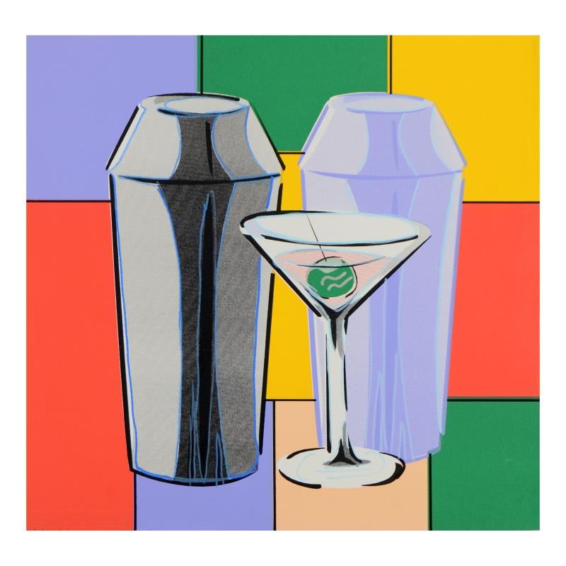"Martini" is a hand embellished limited edition hand pulled silkscreen on canvas by Andy Warhol protege Steve Kaufman (1960-2010). This piece is numbered 7/50 and hand signed inverso. Includes letter of authenticity. Measures approx. 24" x 24" (image).