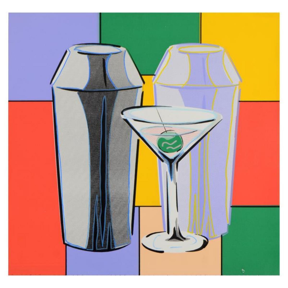 "Martini" is a hand embellished limited edition hand pulled silkscreen on canvas by Andy Warhol protege Steve Kaufman (1960-2010). This piece is numbered 13/50 and hand signed inverso. Includes letter of authenticity. Measures approx. 24" x 24" (image). Reference #: 238500