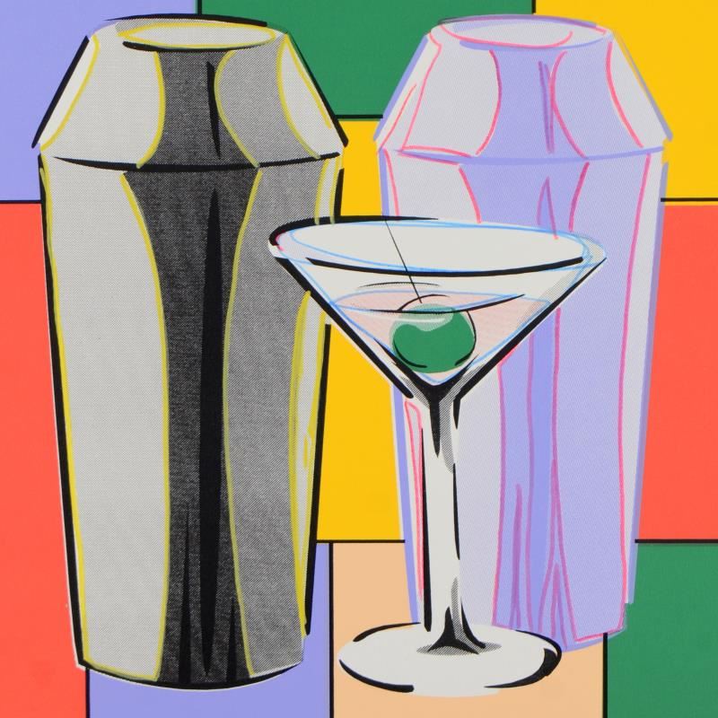 Steve Kaufman (1960-2010) "Martini" Limited Edition Silkscreen on Canvas