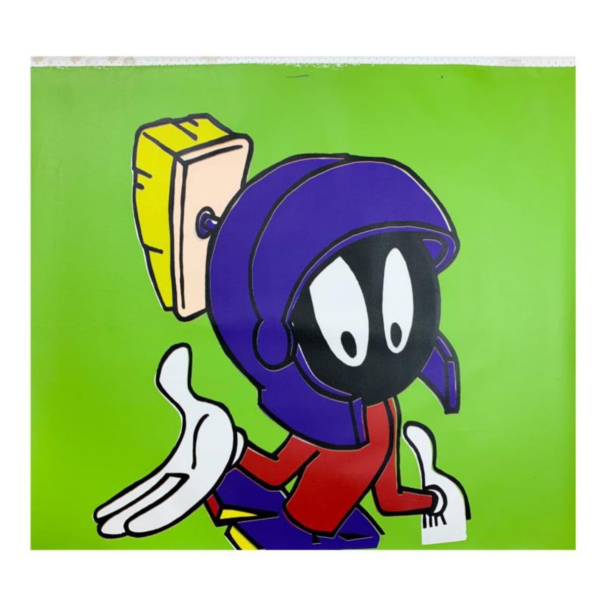 "Marvin Martian" is limited edition hand pulled silkscreen unique mixed media on canvas by Andy Warhol protege Steve Kaufman (1960-2010). This piece is numbered and hand signed inverso and includes a letter of authenticity. As is common with Kaufman's works, this piece may have perceived minor flaws, but is in overall good condition. Measures approximately 26" x 30.5" before cropping. Reference #: 246799
