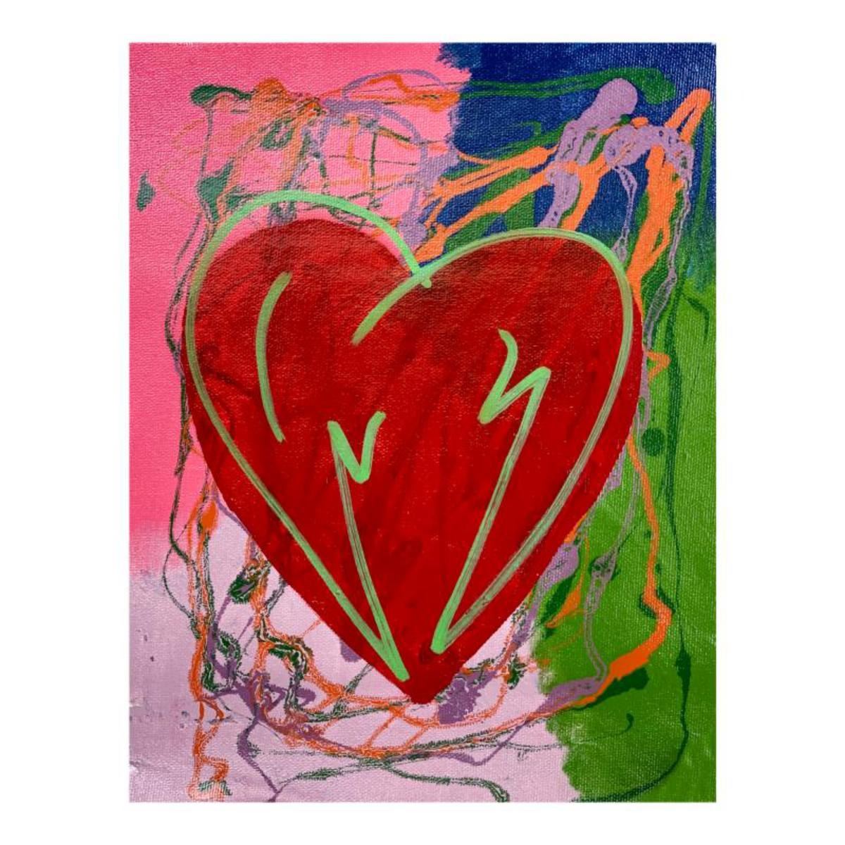 "Mini Heart" is limited edition hand pulled silkscreen unique mixed media on canvas by Andy Warhol protege Steve Kaufman (1960-2010). This piece is numbered and hand signed inverso and includes a letter of authenticity. As is common with Kaufman's works, this piece may have perceived minor flaws, but is in overall good condition. Measures approximately 10.75" x 8.25" before cropping. Reference #: 246732