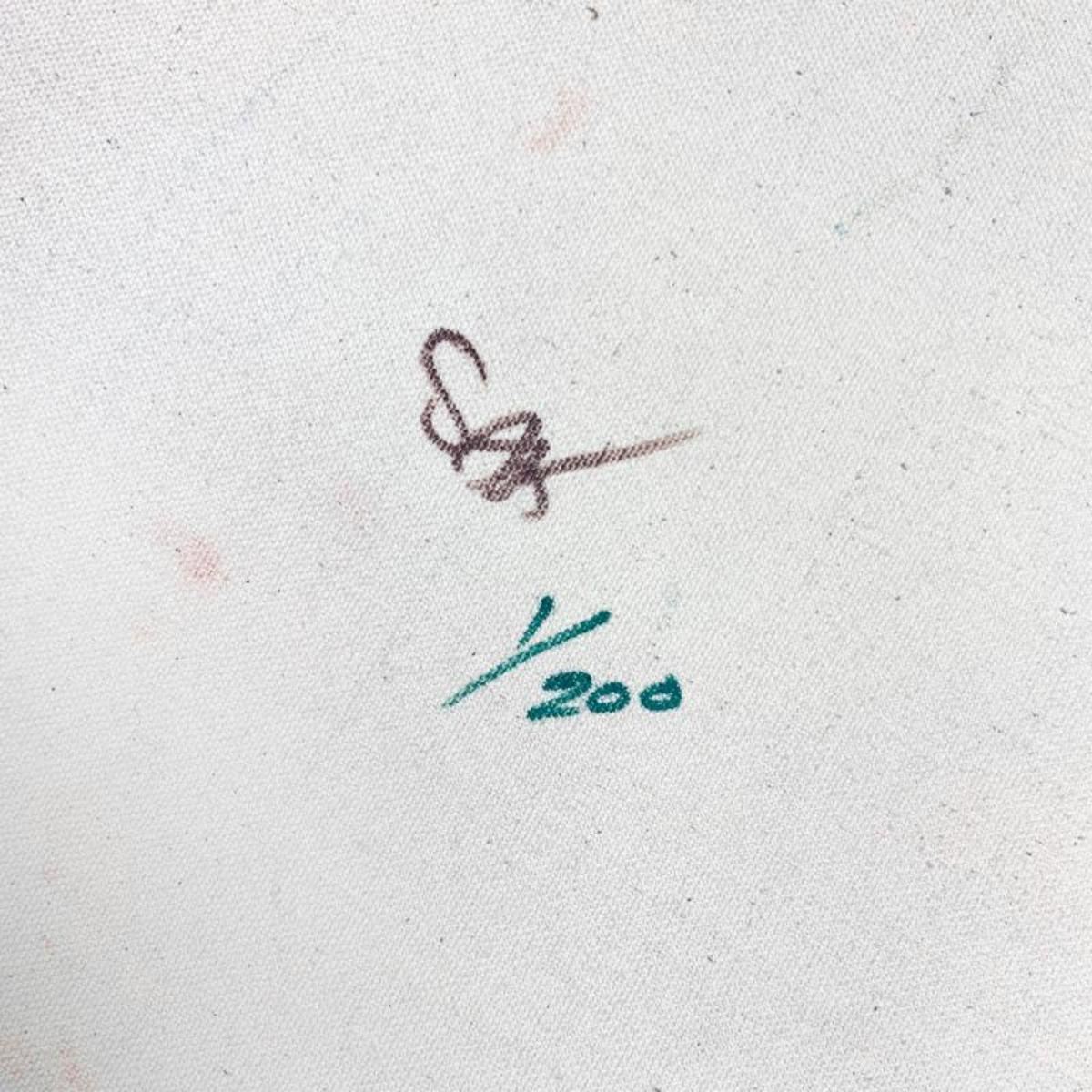 "Moses and the Ten Commandments" is a limited edition hand pulled silkscreen unique mixed media on canvas by Andy Warhol protege Steve Kaufman (1960-2010). This piece is numbered and hand signed inverso and includes a letter of authenticity. As is common with Kaufman's works, this piece may have perceived minor flaws including some cracking in the image, but is in overall good condition. Measures approximately 24.5" x 18.5" before cropping. Reference #: 249590
