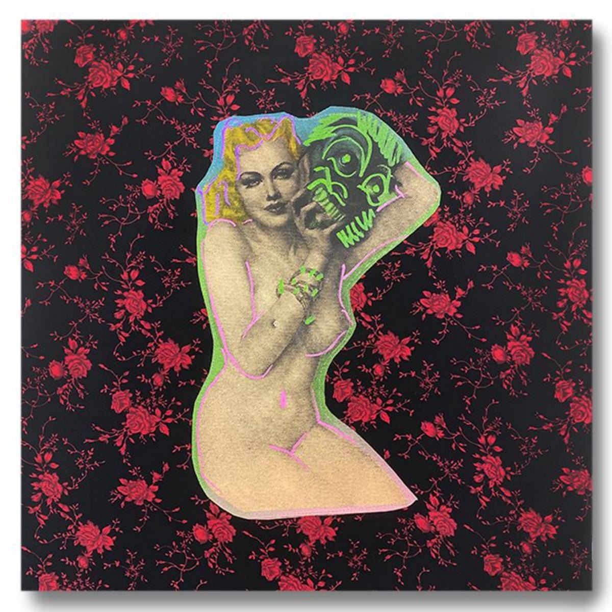 "Pinup and Mask" is a limited edition hand pulled silkscreen mixed media on mixed media by Andy Warhol protege Steve Kaufman (1960-2010). This piece is numbered and 43/100 and hand signed inverso. Includes letter of authenticity. As is common with Kaufman's works, this piece may have perceived minor flaws, but is in overall good condition. Measures approximately 25" x 22" (image). Reference #: 242043