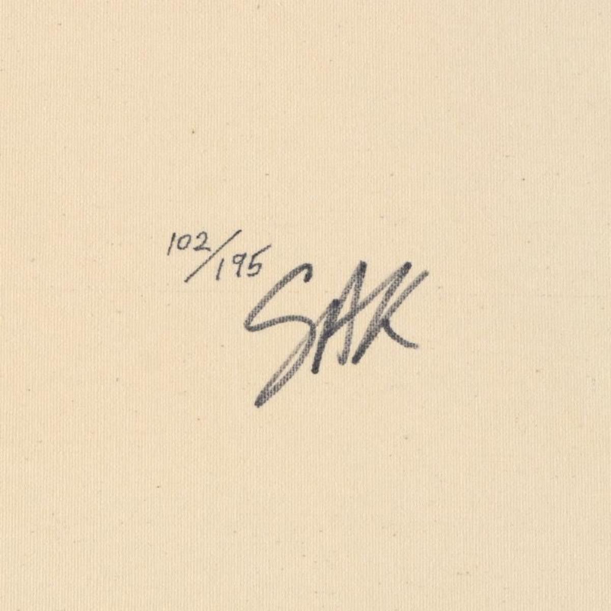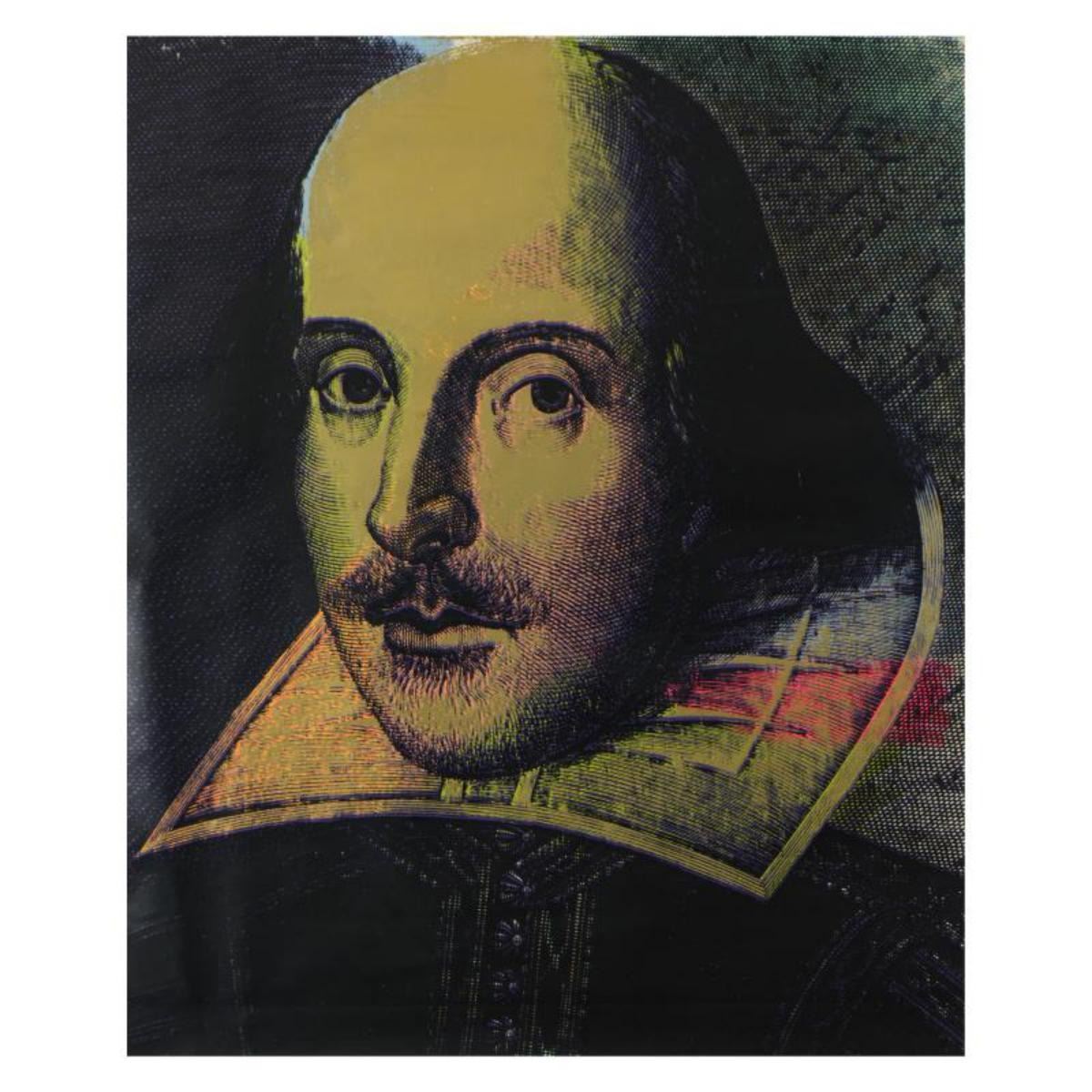 "Shakespeare" is a hand painted limited edition silkscreen on canvas by Andy Warhol protege Steve Kaufman (1960-2010). An edition of this piece is part of the permanent collection in the Shakespeare Museum in Stratford-upon-Avon. This piece is numbered 102/195 and hand signed inverso. Includes Certificate of Authenticity. Measures approx. 40" x 48" (image). ** Please note: there are minor horizontal creases in the canvas that will likely be concealed when the piece is stretched and mounted. ** Reference #: 236053