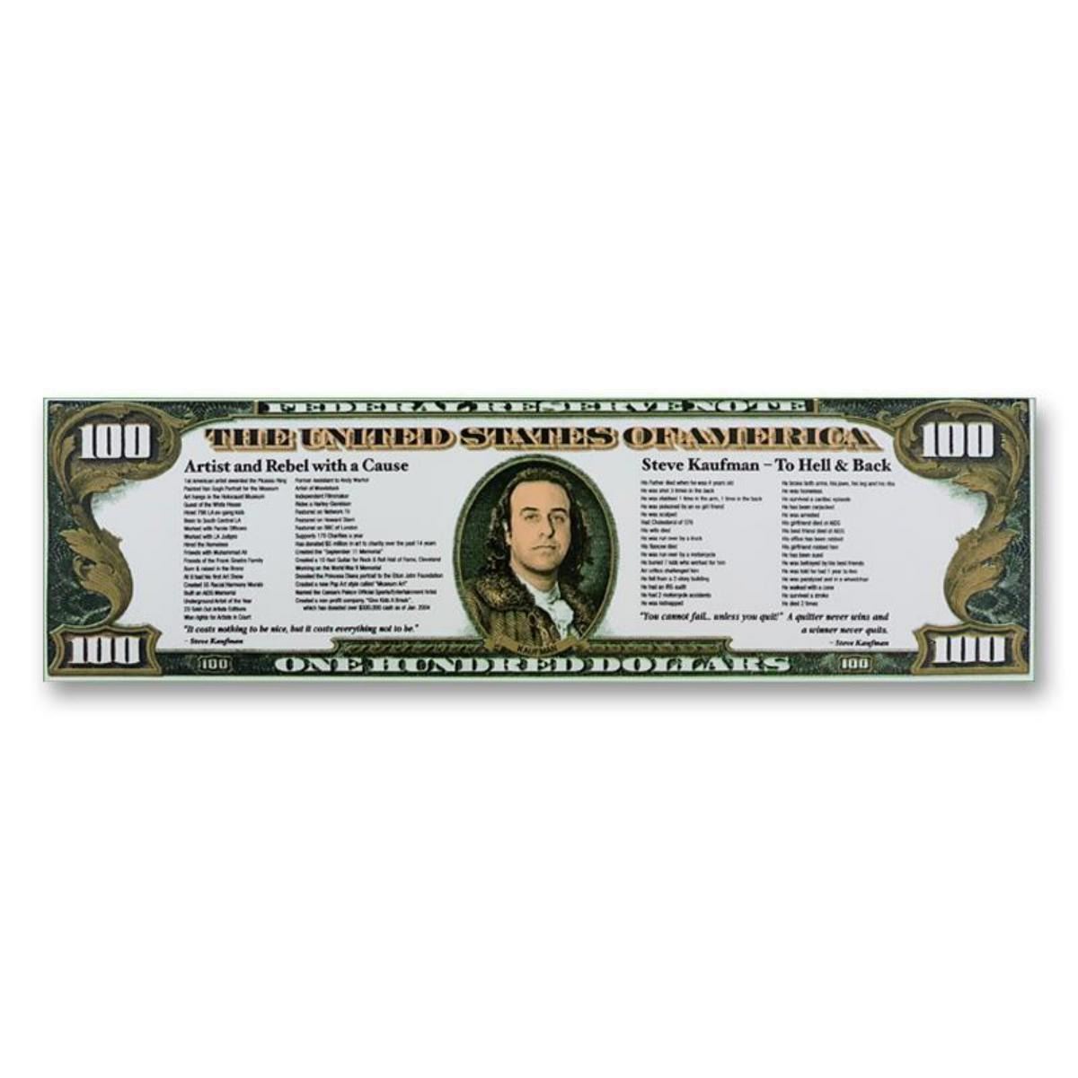 Steve Kaufman (1960-2010), "Steve Kaufman $100.00 Dollar Bill state 2: To Hell and Back" Hand Signed