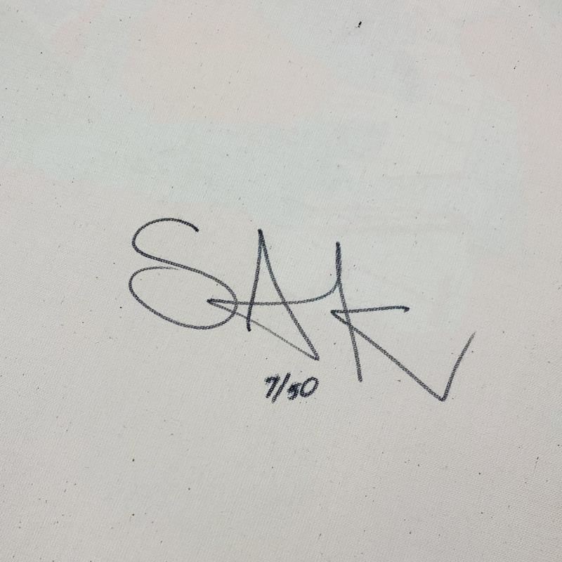 "TO OZ " is limited edition hand pulled silkscreen unique mixed media on canvas by Andy Warhol protege Steve Kaufman (1960-2010). This piece is numbered and hand signed inverso and includes a letter of authenticity. As is common with Kaufman's works, this