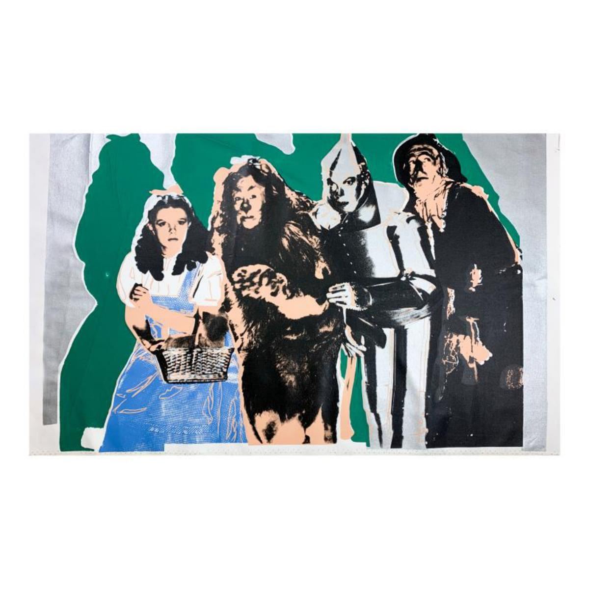 "To Oz" is limited edition hand pulled silkscreen unique mixed media on canvas by Andy Warhol protege Steve Kaufman (1960-2010). This piece is numbered and hand signed inverso and includes a letter of authenticity. As is common with Kaufman's works, this piece may have perceived minor flaws, but is in overall good condition. Measures approximately 27" x 44" before cropping. Reference #: 246819