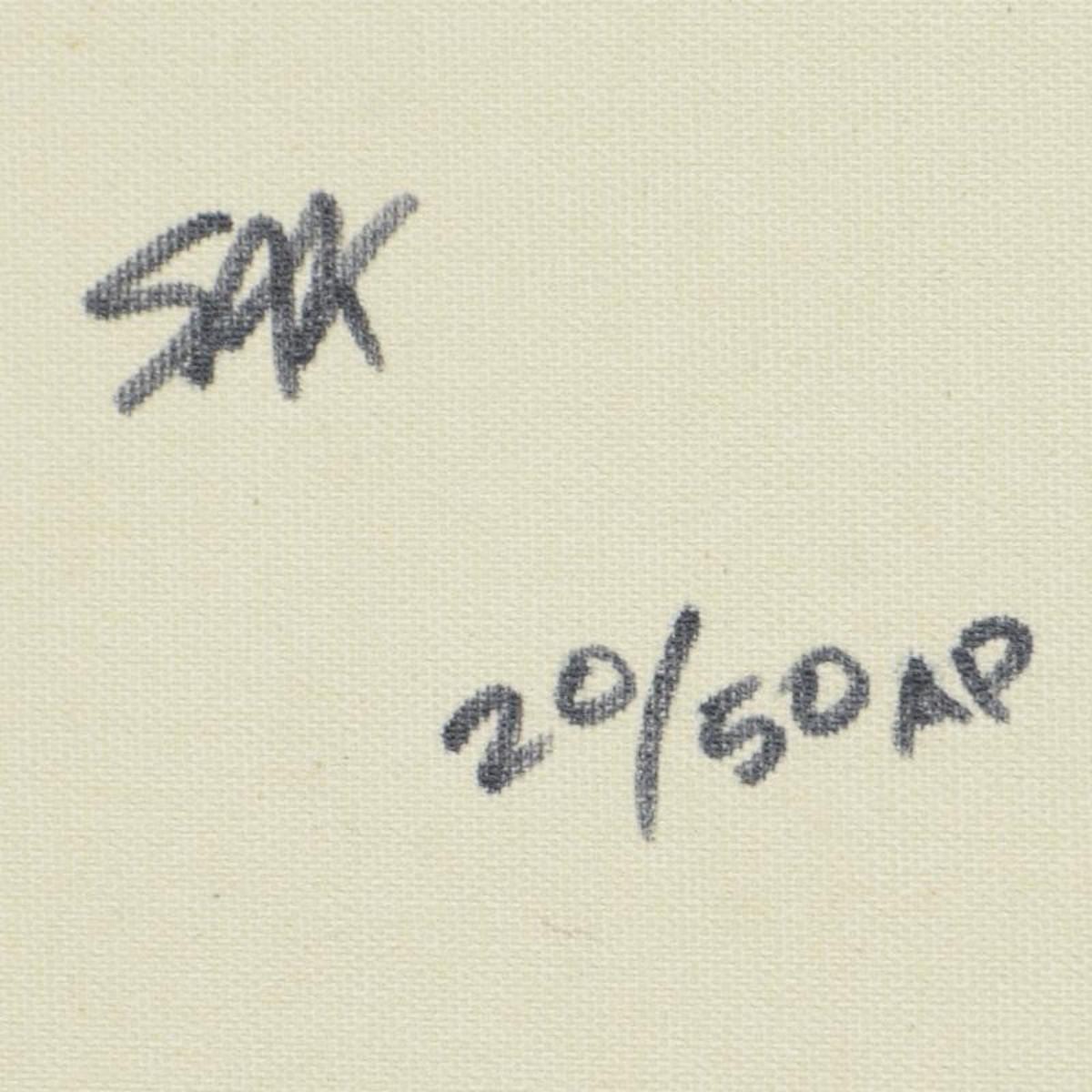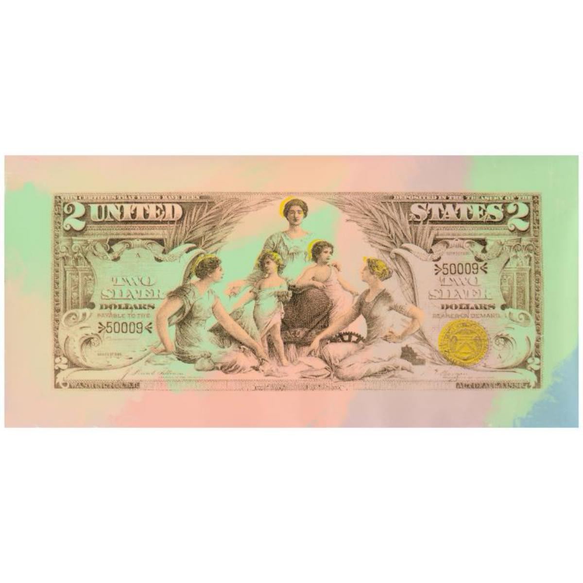 "Two Silver Dollars" is a limited edition hand painted silkscreen on canvas by Andy Warhol protege Steve Kaufman (1960-2010). This piece is AP numbered 20/50 and hand signed inverso. Includes letter of authenticity. Measures approx. 30" x 12" (image). Reference #: 238292