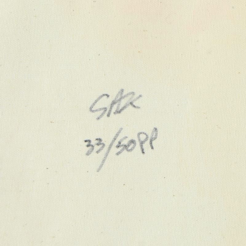 "Uncle Sam" is a hand painted limited edition silkscreen on canvas by Andy Warhol protege Steve Kaufman (1960-2010). This piece is PP numbered 33/50 and hand signed inverso. Includes letter of authenticity. Measures approx. 15" x 16" (image). Please note: