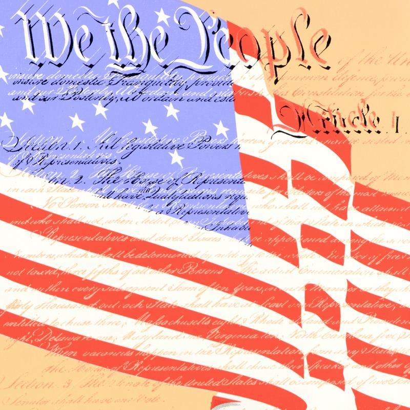 "We the People" is a hand pulled limited edition silkscreen on canvas by Andy Warhol protege Steve Kaufman (1960-2010). This piece is numbered 31/100 and hand signed inverso. Includes letter of authenticity. Measures approx. 24" x 24" (image). This piece
