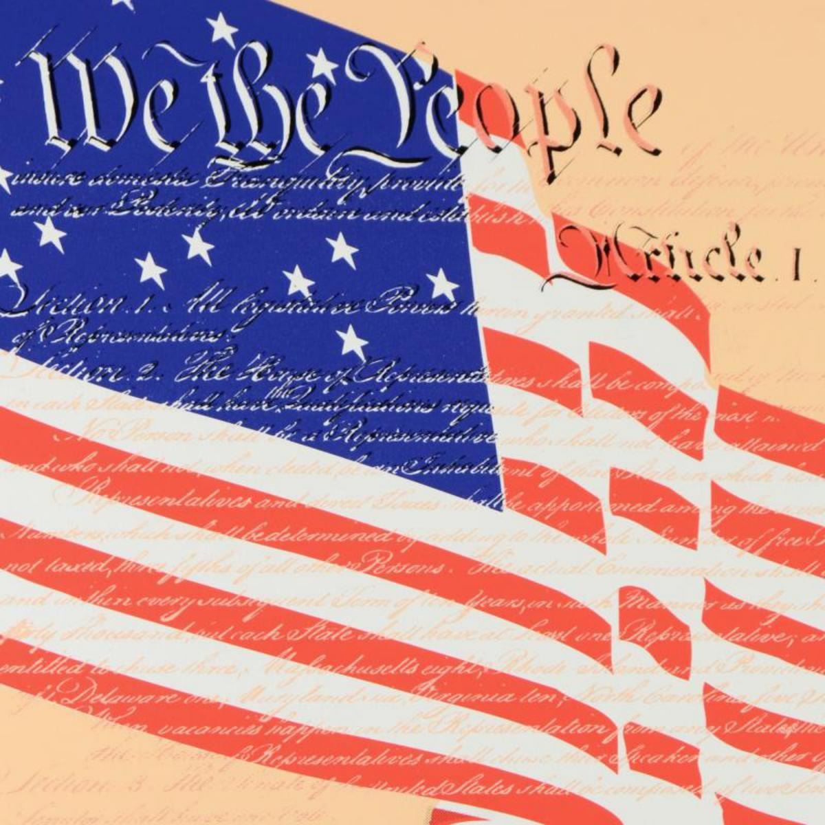 "We the People" is a limited edition silkscreen on canvas by Andy Warhol protege Steve Kaufman (1960-2010). This piece is numbered 41/50 and hand signed inverso. Includes Certificate of Authenticty. Measures approx. 20" x 20" (image). Reference #: 233295
