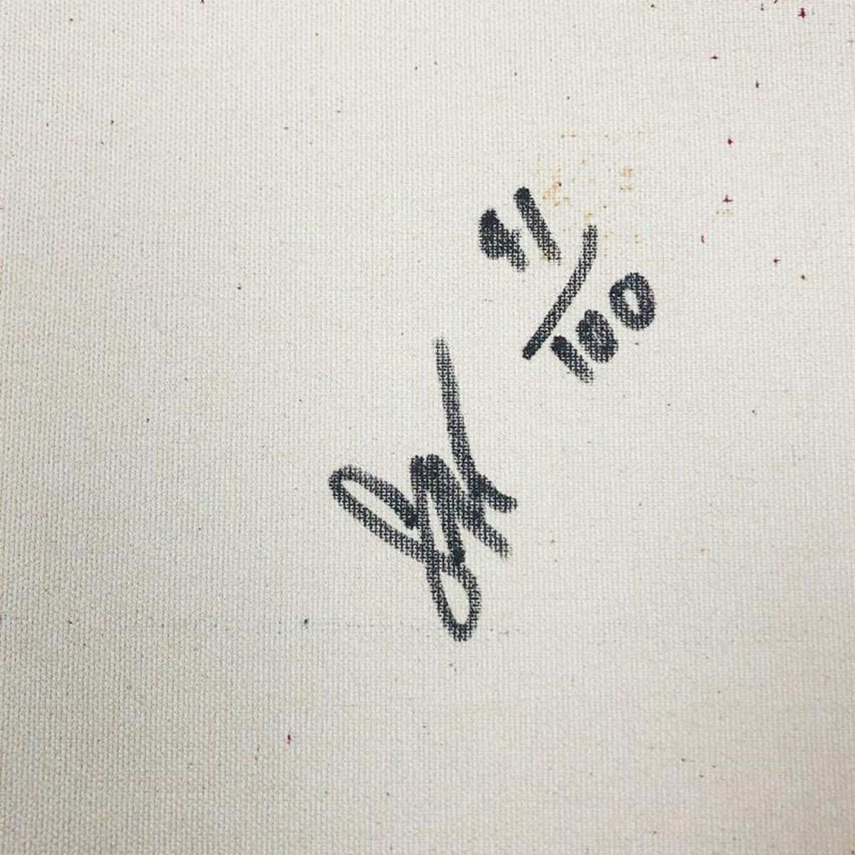 "Yahoo" is a limited edition hand pulled silkscreen mixed media on canvas by Andy Warhol protege Steve Kaufman (1960-2010). This piece is numbered and 41/100 and hand signed inverso. Includes letter of authenticity. As is common with Kaufman's works, this piece may have perceived minor flaws, but is in overall good condition. Measures approximately 10" x 17" (image). Reference #: 239201