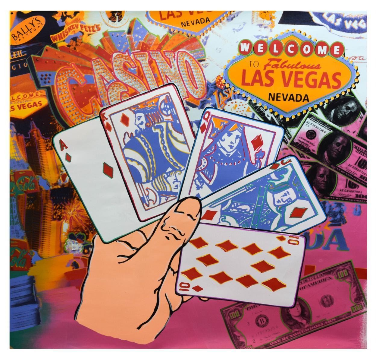 Artist: Steve Kaufman. Medium: Hand Painted One-of-a-Kind Mixed Media on Canvas. Title: Royal Flush. Size (Unframed): 36" x 36". Certificate of Authenticity: Is included. Reference# 12512.