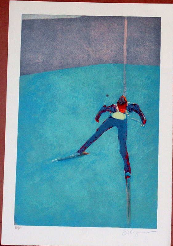 Original lithograph by the well known Sports Illustrated artist, circa 1985. Kuzma is famous for his Impressionist action sports paintings. Signed in pencil by the artist and numbered in an edition of 275. 30x22 in on Arches paper. A Certificate of Authenticity will accompany this work. Add domestic shipping of $40. Int’l depends upon location.