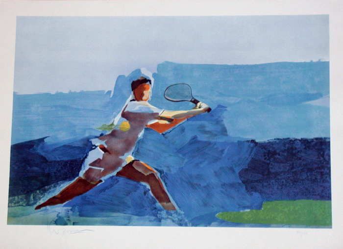 Original lithograph by the well known Sports Illustrated artist, circa 1985. Kuzma is famous for his Impressionist action sports paintings. Signed in pencil by the artist and numbered PP 7/8 aside from the edition of 275 and dedicated “To Jack and Taz” on 21.5”x29.5” Arches paper size. Add domestic shipping of $20. Int’l depends upon location.