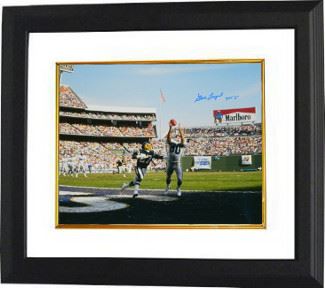 Steve Largent spent thirteen years with the Seahawks, and, while not particularly fast, was extremely sure-handed. He was selected to the NFL Pro Bowl seven times, and was the first Seahawk to earn that honor. When Largent retired, he held all major NFL receiving records, including: most receptions in a career (819), most receiving yards in a career (13,089), and most touchdown receptions (100). He was also in possession of a then-record streak of 177 consecutive regular-season games with a reception. Largent was inducted into the Pro Football Hall of Fame in 1995. Steve Largent has hand autographed this Seattle Seahawks 16x20 Photo with HOF 95 inscription. Schwartz Sports Hologram and Certificate of Authenticity from Athlon Sports. Custom White Mat and Premium Black Color Framed as shown