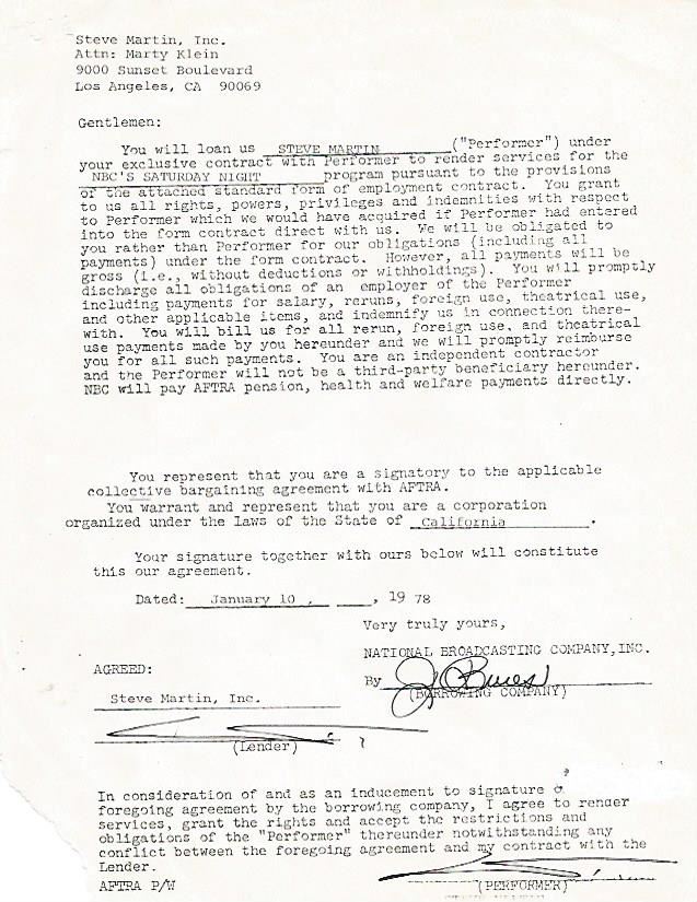 You are bidding on a contract signed by Steve Martin. This item comes with a Certificate of Authenticity guaranteed for the life of the piece.