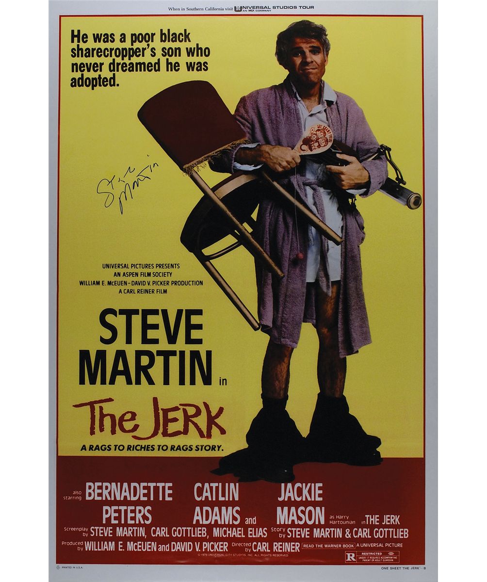 Color 27 x 40 reproduction one-sheet movie poster for The Jerk, signed in blue felt tip. Rolled and in fine condition.