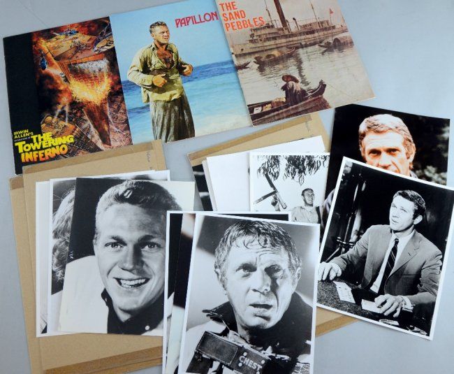 Steve McQueen, A collection of stills & studio portraits 8x10 inch including Bullitt (9), The Great Escape (5), The Cincinatti Kid, Thomas Crown Affair (7), Junior Bonner (4), The Towering Inferno (3) & others, 3 souvenir brochures (52)