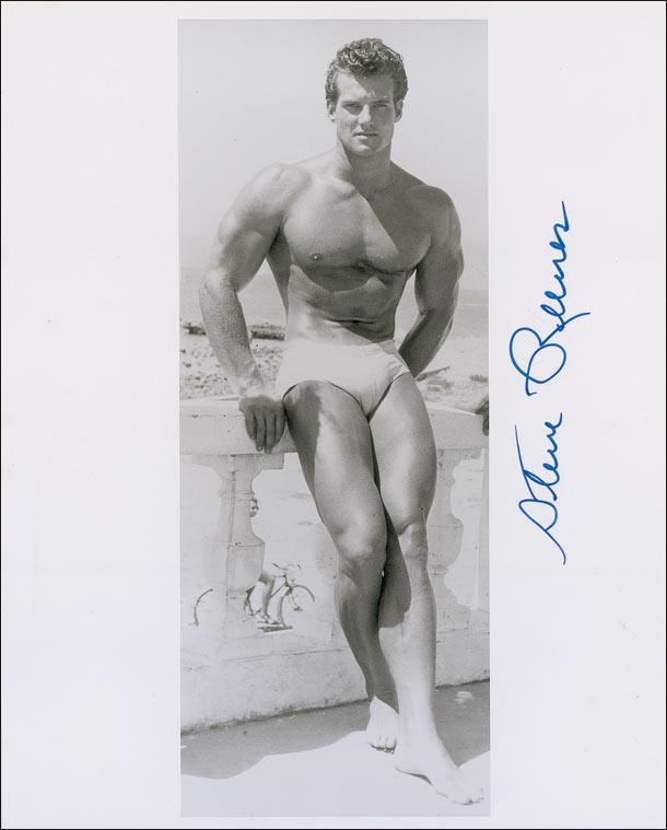 Two glossy 8 x 10 photos, one of Reeves as Hercules, signed in black felt tip; and one of Reeves at the seashore, signed vertically in blue felt tip. In fine condition.