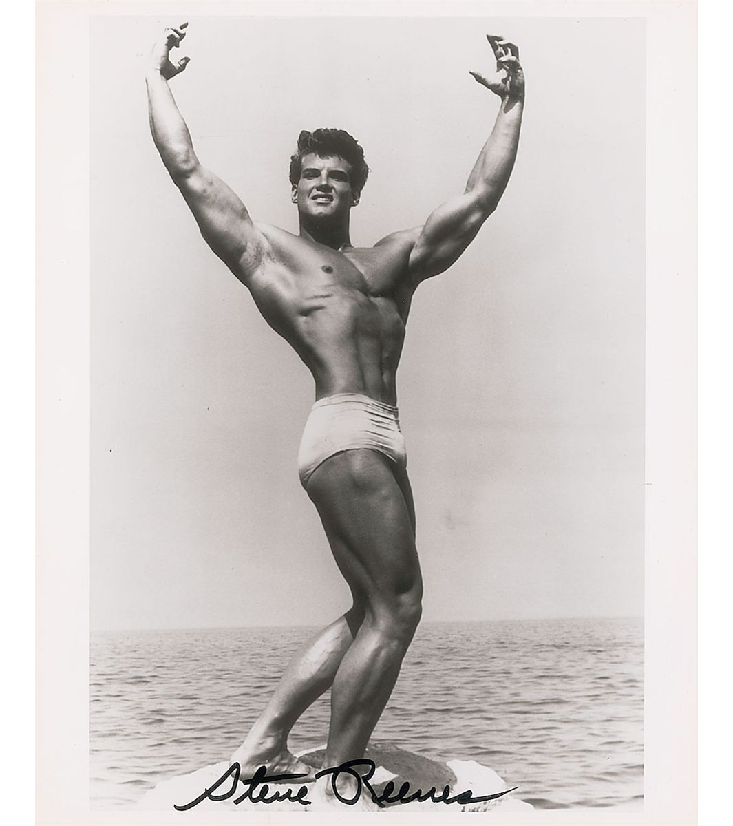 Majestic glossy 8 x 10 photo of Reeves posing atop a rock at the seashore, signed in black felt tip. In very fine condition.