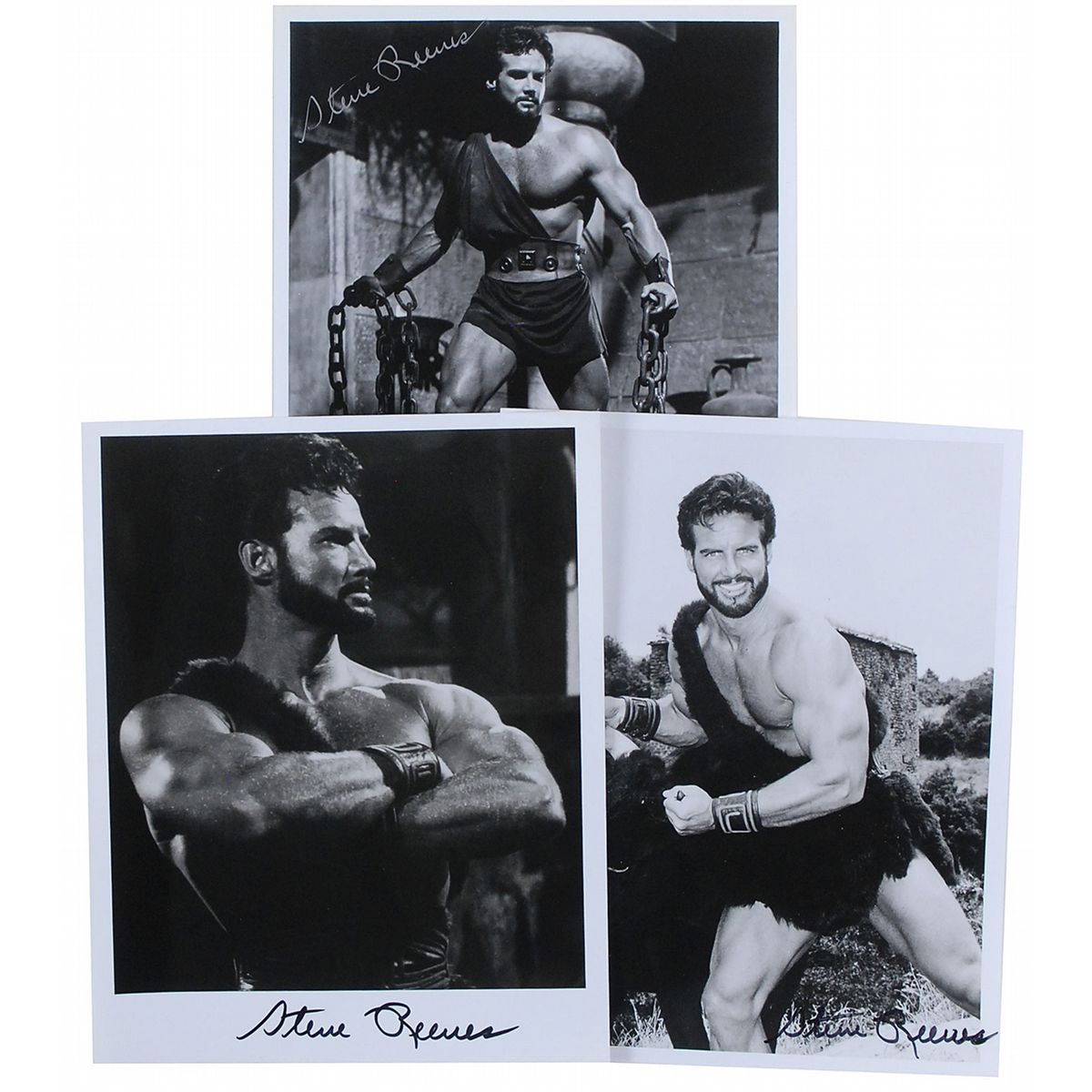 Three different glossy 8 x 10 photos of Reeves as Hercules, each signed in either black felt tip or silver ink. In fine condition.