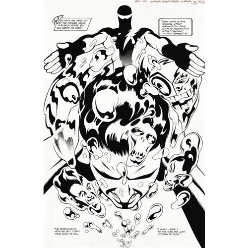 <B>Steve Rude and Gary Martin - Nexus: Nightmare in Blue #1 Splash Page 1 Original Art (Dark Horse, 1997).</B></I> In 1981, Capital City Distributors, under the imprint Capital Comics, put out a terrific black and white comic book homage of sorts to TV's Space Ghost cartoon, about a character named Nexus. The compelling character outlasted both Pacific Comics and Capital City Distributors, and made stars of writer Mike Baron and artist Steve Rude. In this dramatic splash page montage, Nexus is once again haunted by his dreams of vengeance. The overall size of this page measures 14" 17", and the art is in Excellent condition. This seminal scene will make a treasured addition to any Steve Rude/ Nexus fan's collection! <BR><BR><B>Important notice:</B> Heritage usually auctions material at the rate of 200-250 lots per hour. On some occasions eBay Live bid software or the Internet may not be able to keep up with the pace of the auction. We recommend placing a realistic absentee bid now as insurance to avoid disappointment. Occasionally the auctioneer may eliminate or reject an eBay Live bid, and the auctioneer may also reopen a lot after the close of the eBay live bidding (usually because we missed an audience bid), and may reject your bid even if it shows you as the winning bidder. By bidding via eBay Live, you agree that Heritage may award the lot to another bidder at its sole discretion under the circumstances described above or any other reasonable circumstances. Since eBay bids are not shown to us until we open the lot on the floor, we treat those bids just like floor bids. In most cases the floor responds before the eBay bid is presented to us, due to Internet lag time, so for consistency we have made it a policy that floor bids are always considered first over tie eBay live bids. Also please note that all Heritage lots purchased through eBay Live carry a 22.5% Buyer's Premium. Please make sure you read the Terms and Conditions before you bid. This lot is being auctioned in conjunction with a live floor auction by Heritage Auction Galleries. All final auction and invoice information will be supplied by Heritage Auction Galleries, and all other information should be considered preliminary. Lot:41001 <BR><BR><B>Winning Notification and Billing:</B> After the FINAL session in this auction is complete, Heritage will send e-mail and snail mail invoices. This process normally takes several days. All final auction and invoice information will be supplied by Heritage Auction Galleries, and all other information should be considered preliminary. <BR><BR>This auction will be conducted on a live auction floor and over the Internet through eBay Live. If you choose to place an absentee bid, please take a moment to <font color='#0000ff'><u><a href='http://pages.ebay.com/liveauctions/help/before/laabsentee.html'>learn how eBay Live absentee bidding works</a></u></font><font color='#000000'>