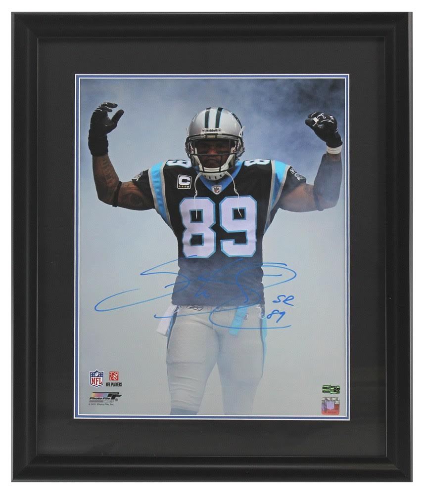 Custom framed display measures 23" x 27" in size and features a 16" x 20" photo that has been hand-signed in blue paint pen by Steve Smith Sr.