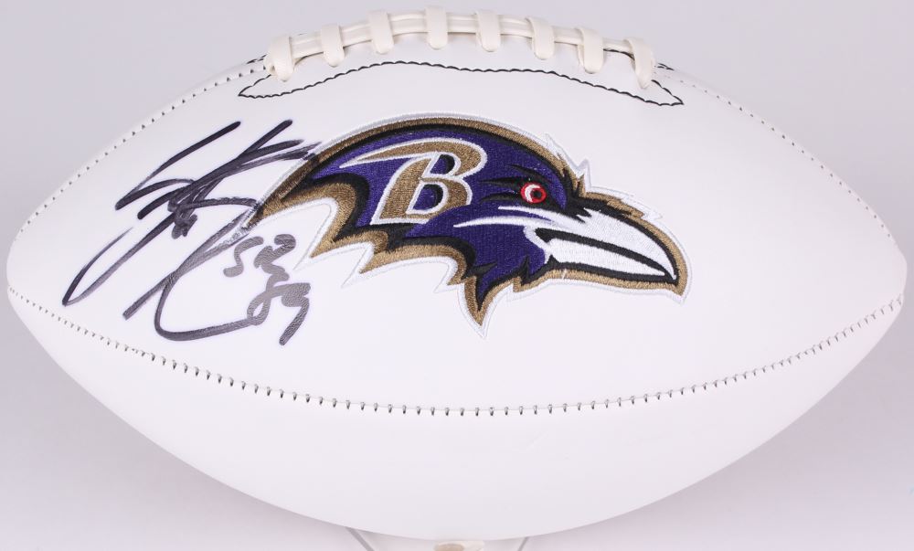 Ravens Logo Full-Size Football. Hand-signed in black felt-tip pen by Steve Smith Sr.