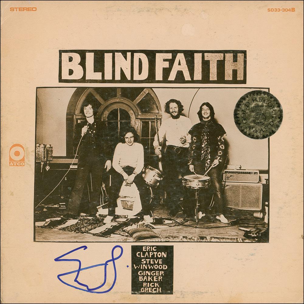 Two signed albums, Blind Faith and John Barleycorn Must Die, each signed on the front cover in blue felt tip. The records are not included. In very good overall condition.