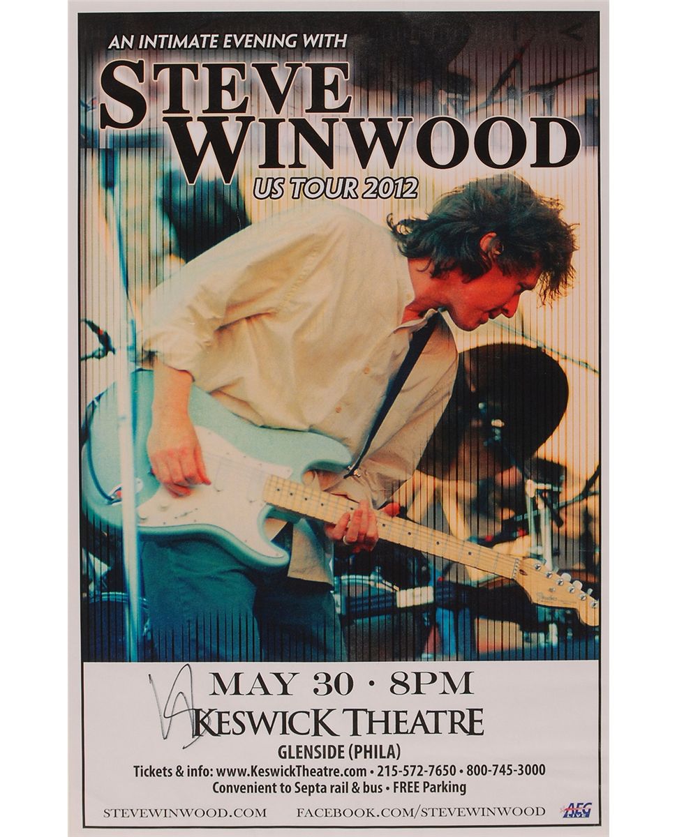 Color 11 x 17 laserprint poster for Winwood’s May 30 performance in Philadelphia during his 2012 US Tour, signed in person in black felt tip. Scattered creases to the bottom, otherwise fine condition.