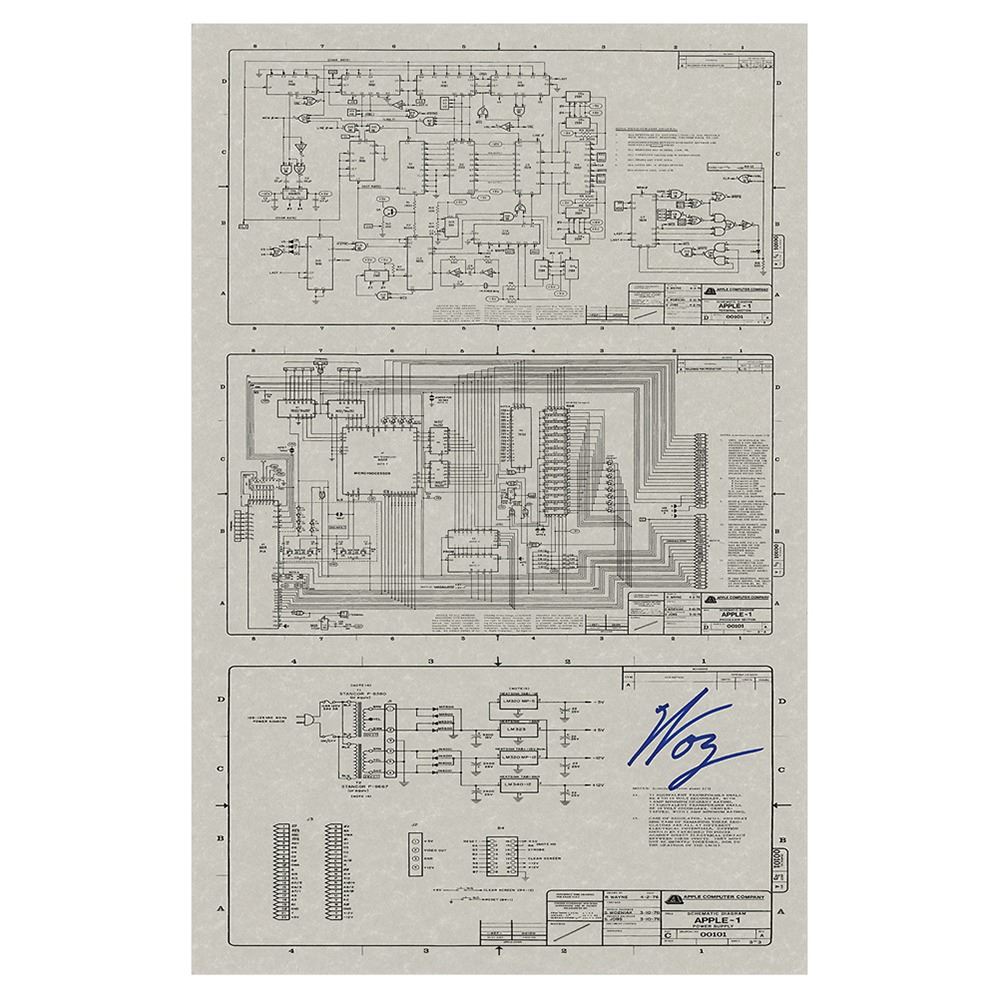 Printed reproduction of an Apple-1 'power supply' schematic diagram, 11 x 17, signed in blue felt tip by Apple co-founder Steve Wozniak, Woz. In fine condition.
