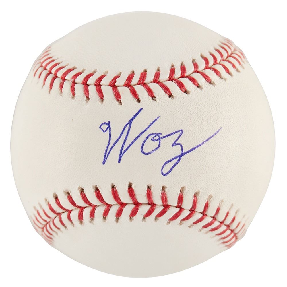 Official Rawlings Major League (Selig) baseball signed on the sweet spot in blue ballpoint by Steve Wozniak, "Woz." In very fine condition.