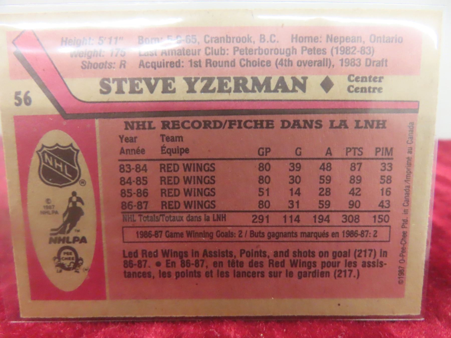 Steve Yzerman Detroit Red Wings Card