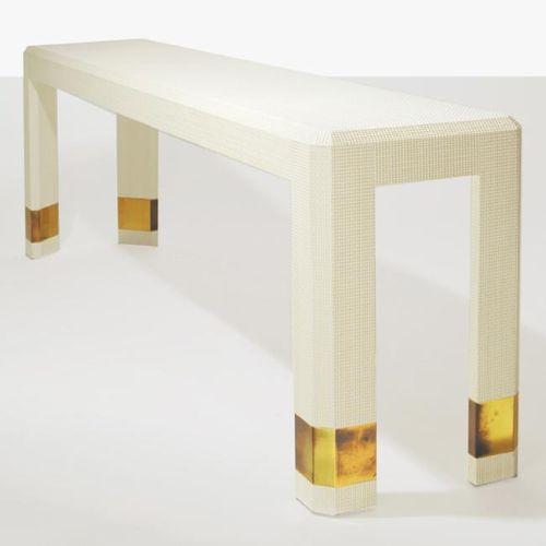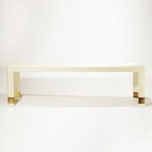 25h x 17w x 86d inches, off white painted wood, rattan, copper