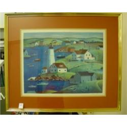 Limited Edition print (H.C./350). Steven Klein. "Lighthouse Cove". Professionally framed. Signed on lower right. Image - 19" x 24". Overall - 29" x 34". Great color by a well-documented New York artist. Condition: Excellent, with paperwork.