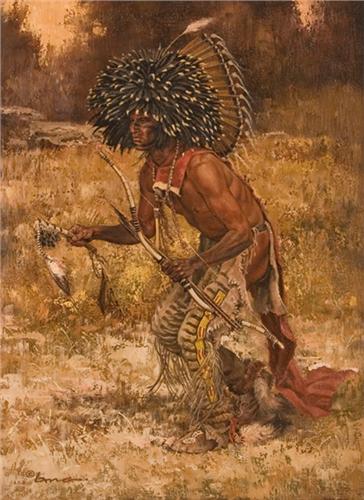 Steven Lang (b. 1960). Hidatsa Dog Soldier. 24" x 18" oil on canvas. Signed lower left. (est $3,000-4,000)