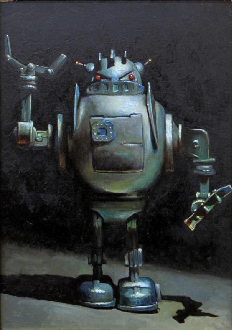Vintage Toy Robot painting. 22x17 inches. Signed.