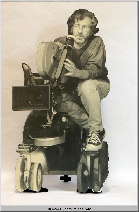 Large Standing Silhouette with Picture of Steven Spielberg sitting on Camera Dolly / Very Heavy Metal Frame / L 48 x W 6 x H 89