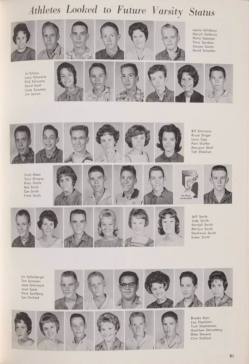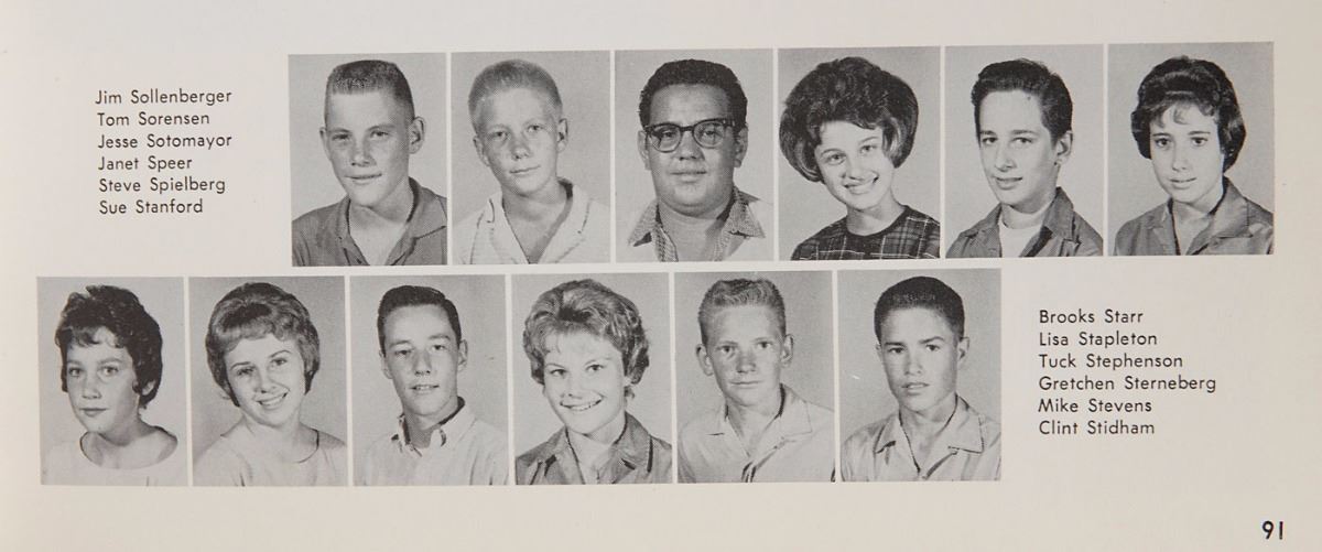 Original 1962 Arcadia High School ‘Olympian’ yearbook, 8 x 10.75, 204 pages, depicting Spielberg as a member of the freshman class on page 91. In fine condition, with some soiling to back cover.