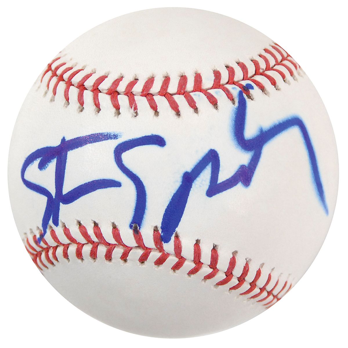 Official Rawlings Major League Baseball signed on the sweet spot in blue felt tip; and a Raiders of the Lost Ark laserdisc, signed on the front cover in blue felt tip. In overall fine condition, with slight feathering to the ink on the baseball. Accompanied by a certificate of authenticity from PSA/DNA for the laserdisc. The disc is included.
