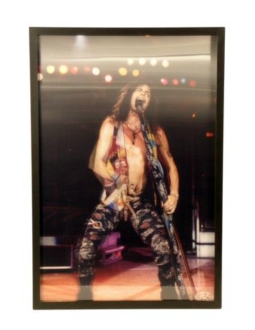 Steven Tyler Aerosmith Lenticular Photo By Jay Blakesberg - An extremely rare and remarkable oversized Lenticular framed photo of Steven Tyler of Aerosmith fame. The Lenticular printing is a technology in which Lenticular lenses (a technology that is also used for 3D photos) are used to produce printed images with an illusion of depth, and the ability to change or move as the image is viewed from different angles. Lenticular's are very expensive to reproduce and because of the expense and complex process are usually printed in 5"x8" formats. Having one printed this size is extremely rare. The photo was taken by legendary rock photographer Jay Blakesberg. He began his illustrious career photographing the Grateful Dead at the Meadowlands in 1978 which started an amazing body of work that continues to this day. He has photographed virtually all the great Rock Groups of the past 40 years, and his photographs have appeared on over 75 iconic rock album covers. Blakesberg has shot over 300 assignments for Rolling Stone and has been published in print magazines from Time to Vanity Fair to Guitar Player as well as hundreds of other major magazines throughout the world. Some of the bands he is famous for shooting are Janes Addiction, The Pixies, Soundgarden, Tom Waits, John Lee Hooker, Santana, Brian Wilson, Willie Nelson, Metallica, Talking Heads, Beck, Joni Mitchell, Neil Young, Tom Petty, Dead Hot Workshop and of course Aerosmith. (Lenticular is approx. 37 1/2 x 25 1/2").